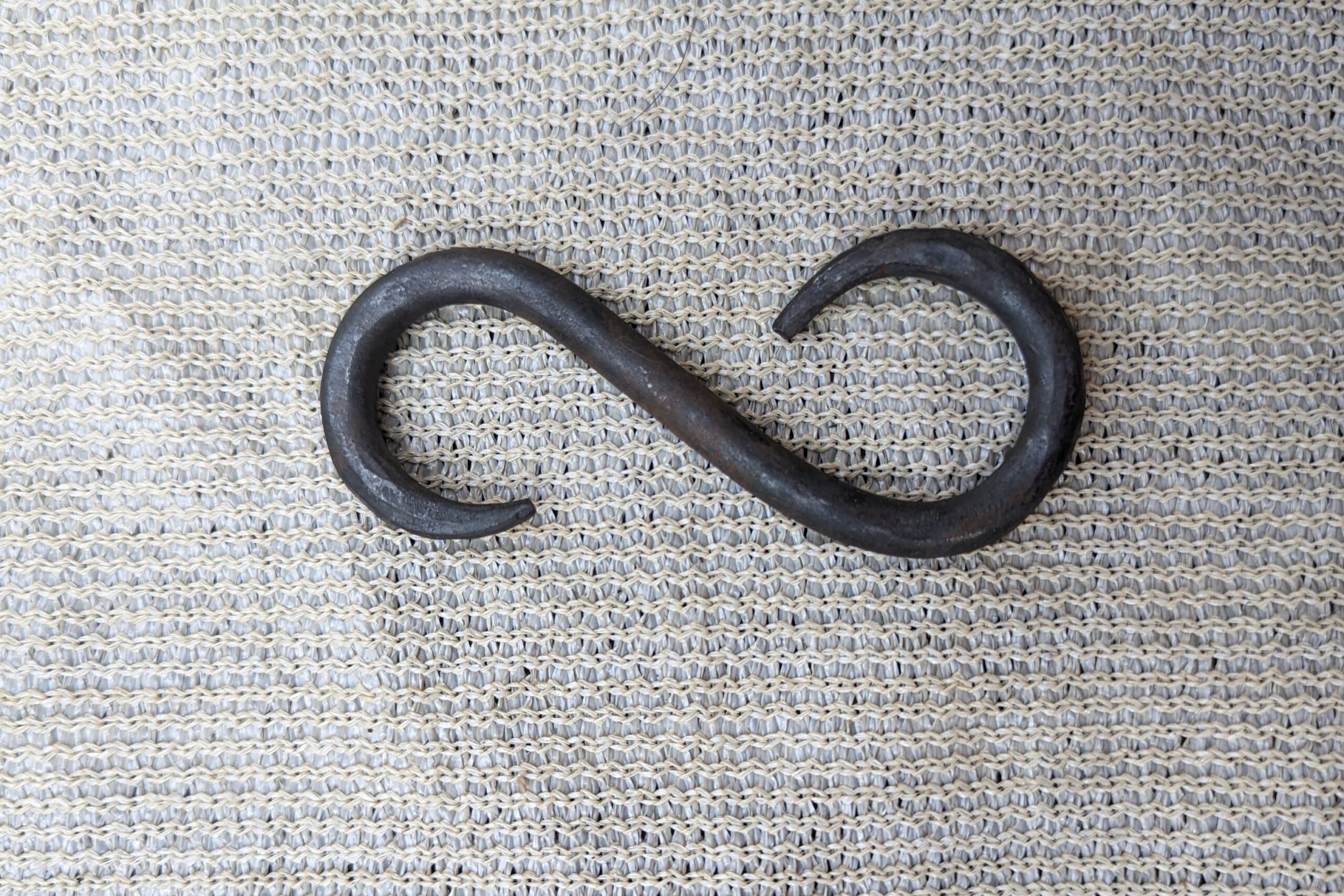 Met deze handgesmede haak kunt u uw pan ophangen aan een ketting of aan een driepoot.